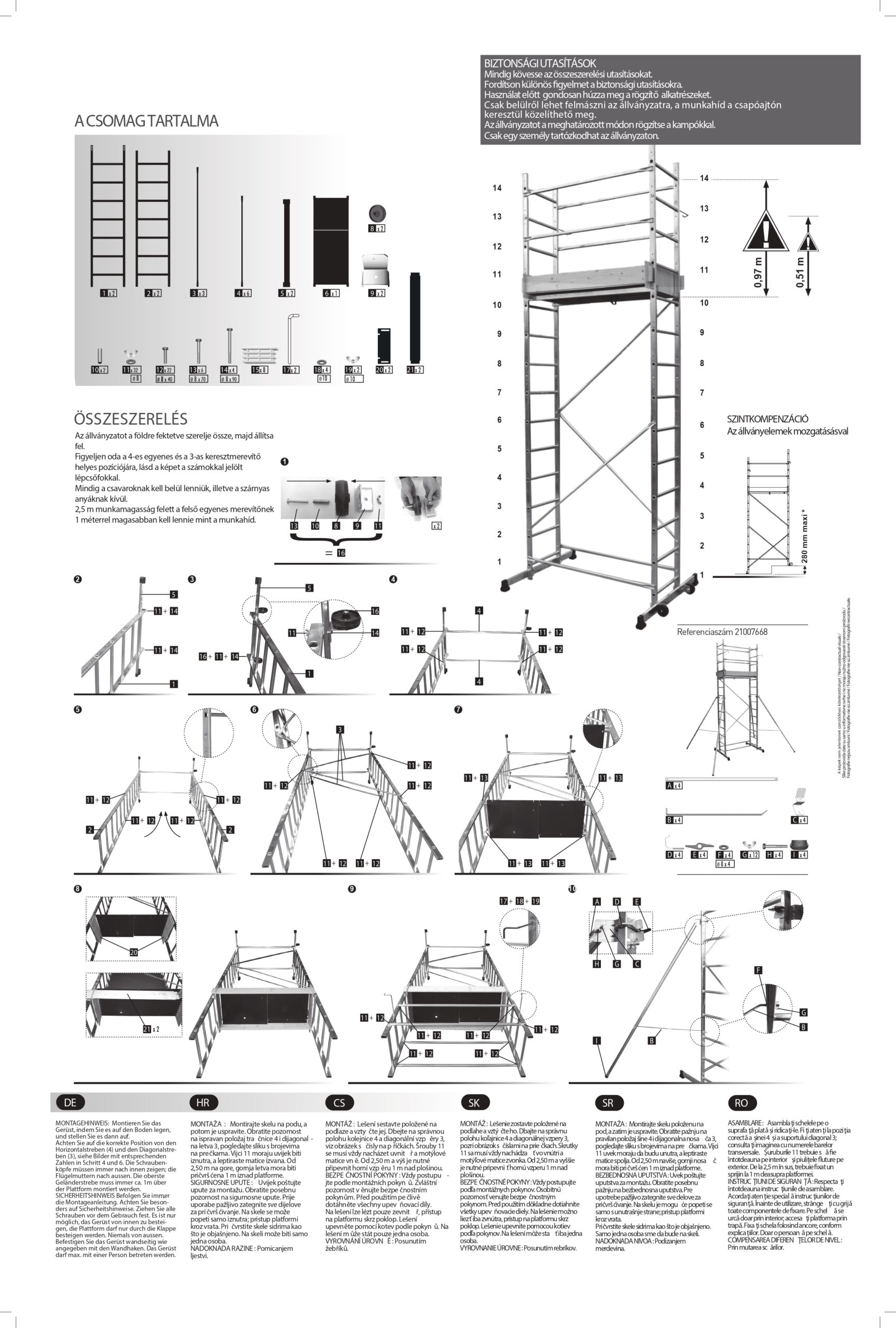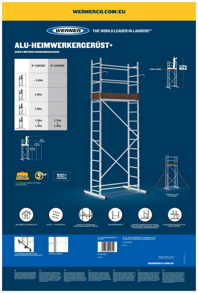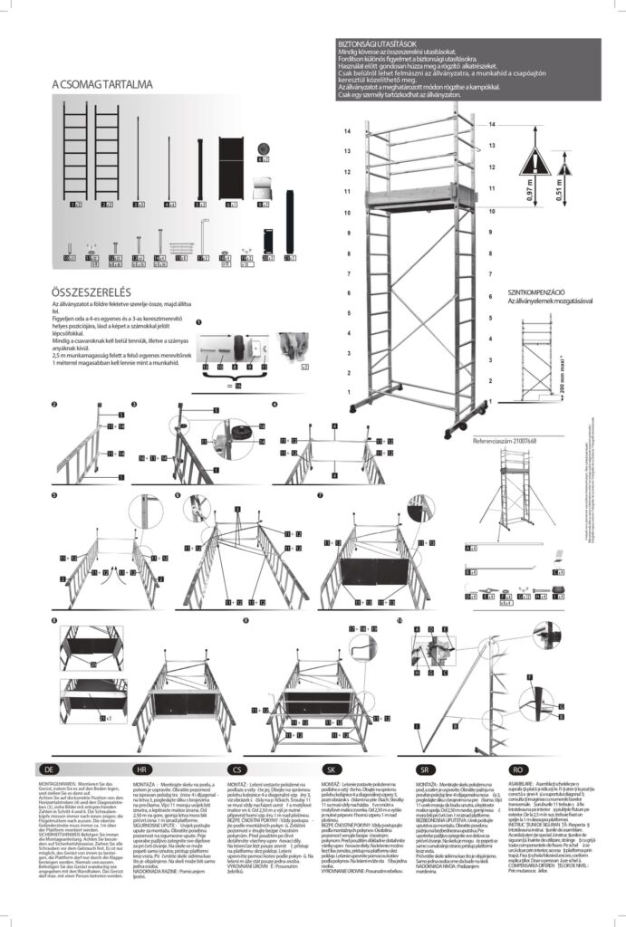 | Cikkszám | Megnevezés | Dobogóméret (m) | Járólap max. magassága (m) | Munkamagasság kb. (m) | Súly (kg) | Nettó ár | Bruttó ár | |