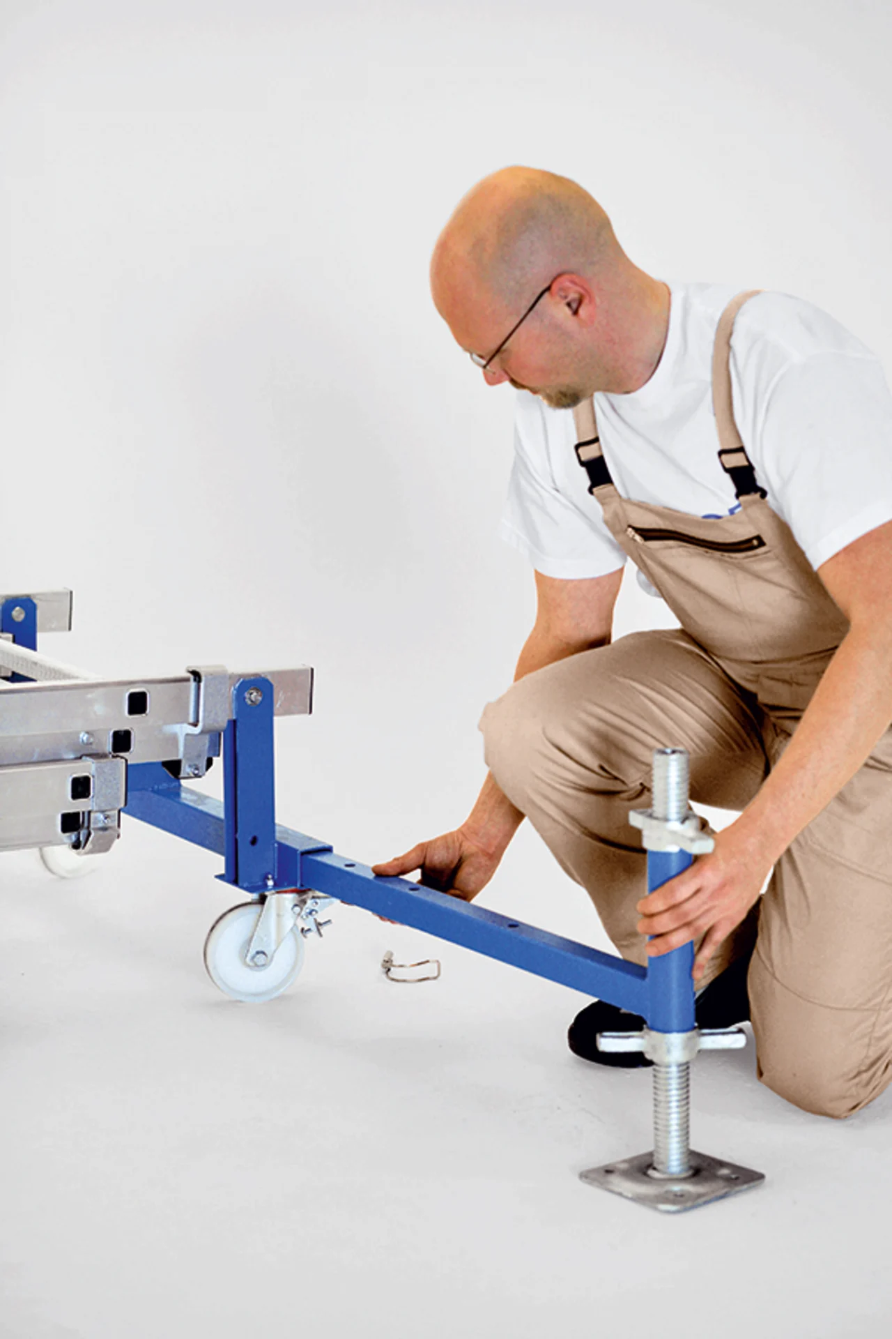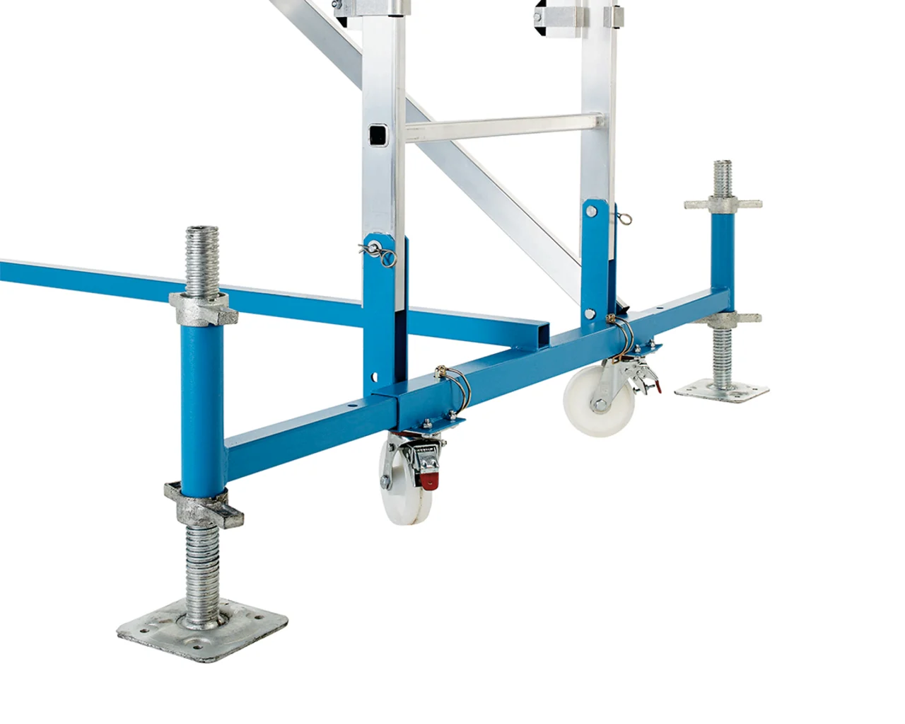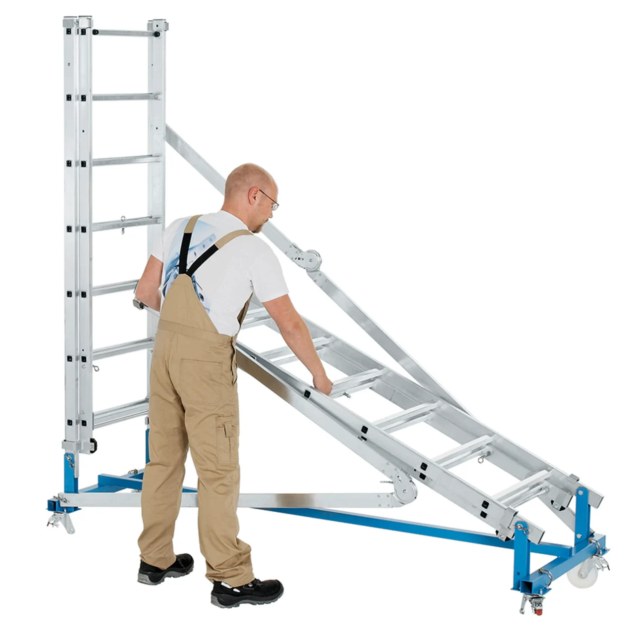Nagyméretű járólap 0,50 m x 1,95 m illetve 0,60 m x 2,50 m. Körbe futó korlát a maximális munkabiztonságért. Egyszerű magasságállítás az automatikusan záródó tolólétra elv alapján, így lehet különböző magasságokat egy munkaállvánnyal elérni. Egyszemélyes magasságállítás. A szállításhoz és a tároláshoz egyszerűen összecsukható. Kihúzható kitámasztó stabil orsókkal a megfelelő stabilitásért és a talajegyenetlenségek kiküszöbölésére.